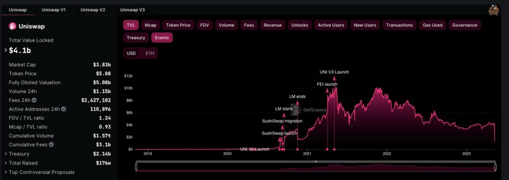 On May 4th, Uniswap squared off with Coinbase, with each platform recording a trading volume of roughly $1.2 billion, as reported by DeFi Llama and CoinGecko. Uniswap then took the lead on May 5th, registering a trading volume of $2.2 billion, significantly outdoing Coinbase’s $1.3 billion.