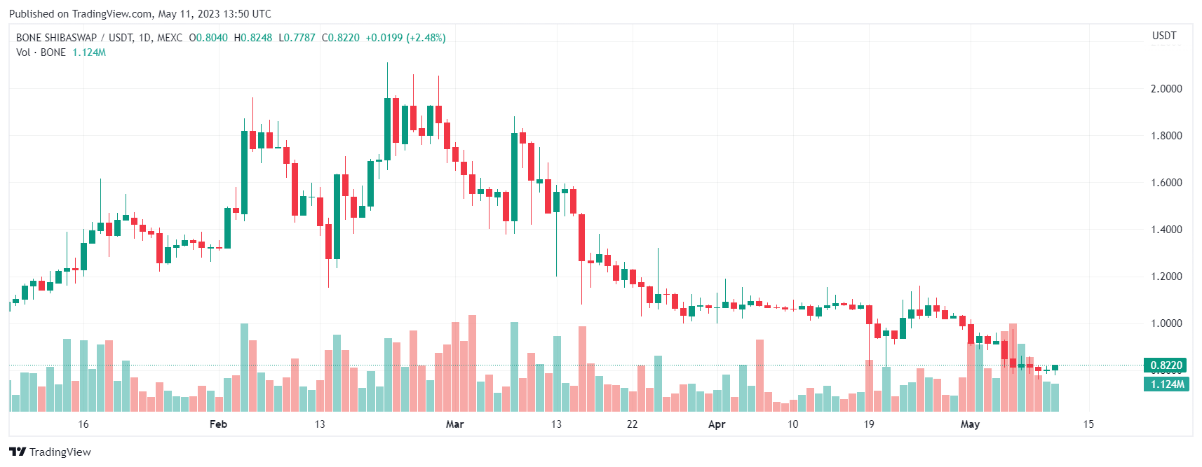 At the time of writing, BONE is trading at $0.8218, indicating a surge of 2% over the past 24 hours.