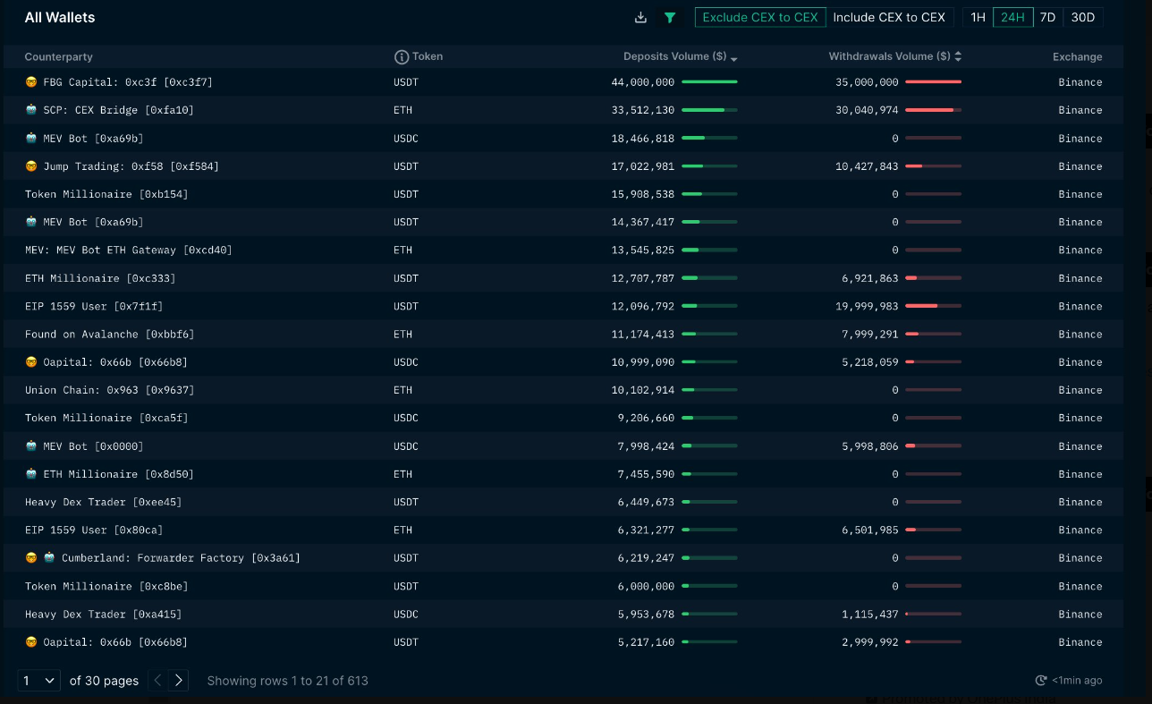 Nansen took to Twitter to share the details of exchange flows in which Binance takes a substantial position: