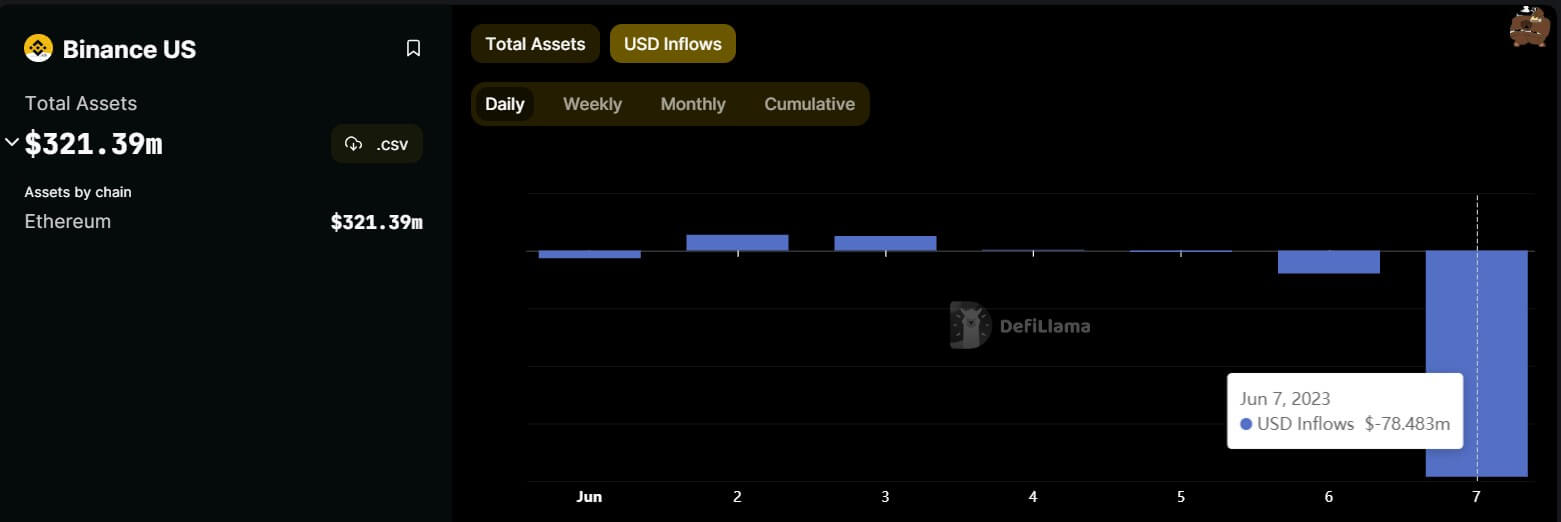 Crypto traders using Binance US withdrew $78.48 million on June 7 from the embattled platform, according to DeFillama data, despite assurances that their funds were safe.