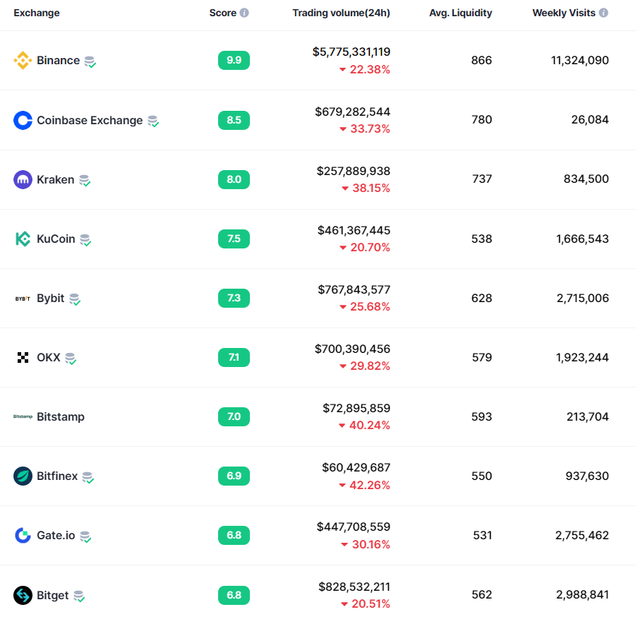 According to CMC, Bitstamp and Bitfinex’s trading volumes declined the most — 40% and 42% — among the top 10 exchanges.