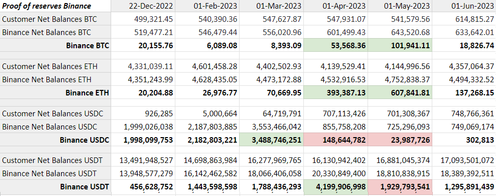 While the report presents a healthy financial situation for Binance, its $USDC reserve movements post-Silvergate collapse and the depeg of the stablecoin was the main topic of discussion. The PoR shows that Binance’s $USDC balance decreased from $3.4 billion on March 1st to $23.9 million by May 1st.