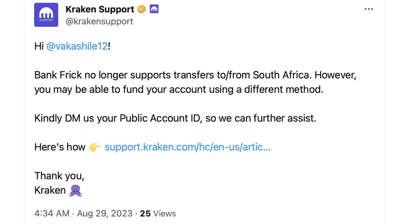 Kraken Follows Circle in Blocking Deposits by South African Residents