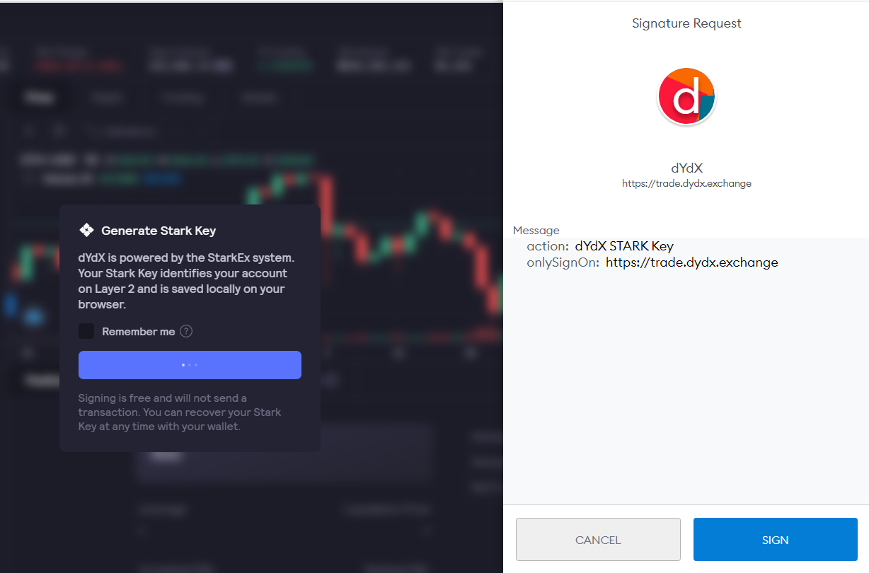 After connecting your wallet, a pop-up will invite you to generate a Stark Key (see the screenshot above). The Stark Key helps identify a user’s account and creates a secure interaction between Layer 1 and Layer 2.