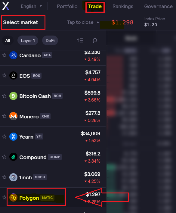 To start trading, head to the “Trade” tab and select a crypto asset that you want to trade. Besides Bitcoin and Ethereum, dYdX allows perpetual trading for several major crypto assets. In this guide, Crypto Briefing demonstrates how to take a long position on Polygon’s MATIC token. Click on the asset, in this case MATIC, to open the trading window.