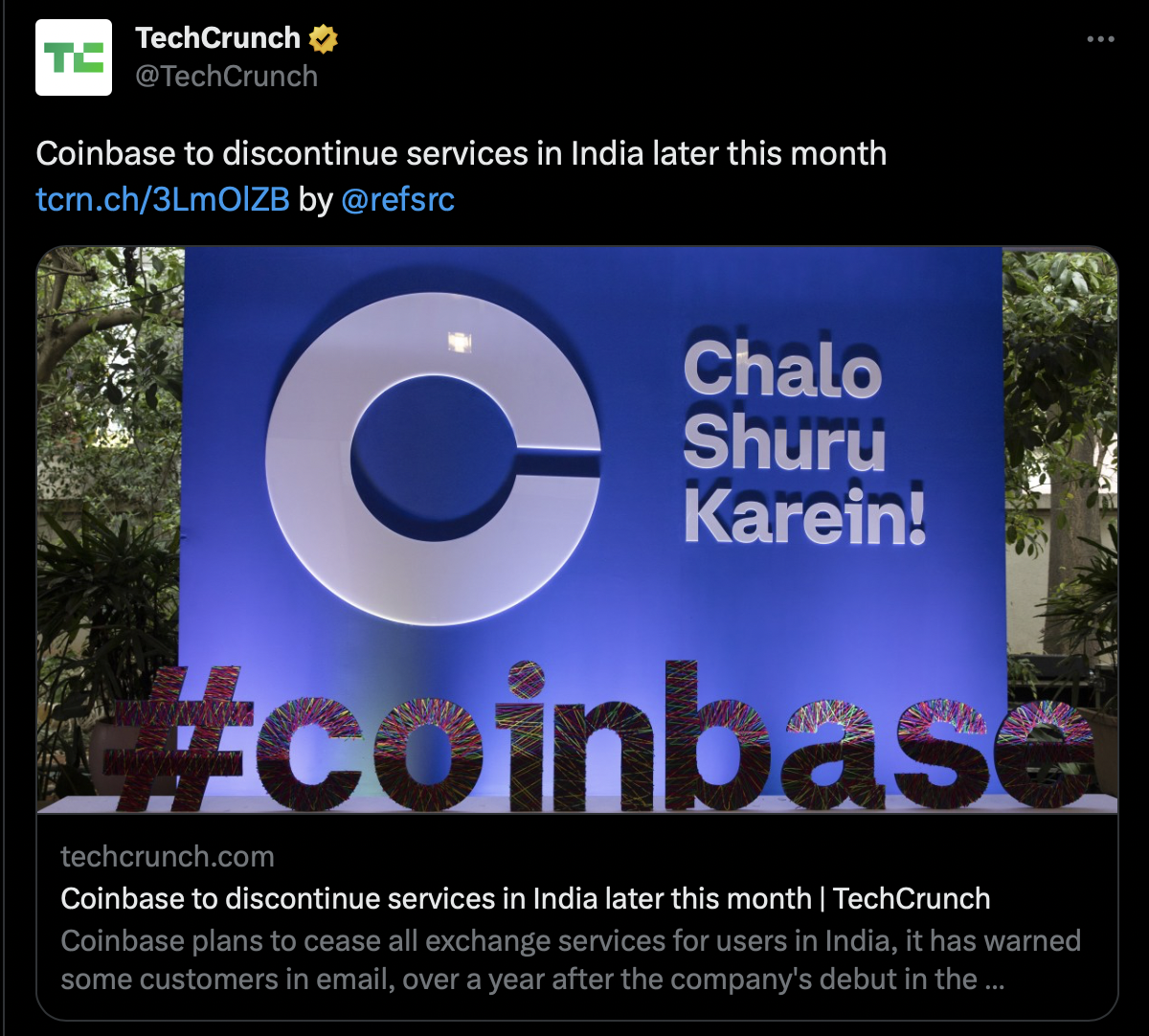 TechCrunch, known for its technology news, published a report today regarding the US-based cryptocurrency exchange Coinbase. The report states that Coinbase is planning to halt all services in India by the end of the month.