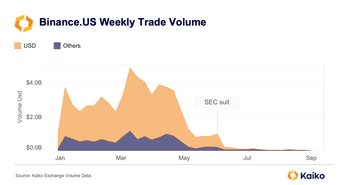 Sept. 18 (Bloomberg) — #Binance .US trading volume hit a record low, with only $2.97 million traded on Sept. 9th.@CryptoDaSensei @Ricky_BlueCrypt pic.twitter.com/eD8jhmS61f
