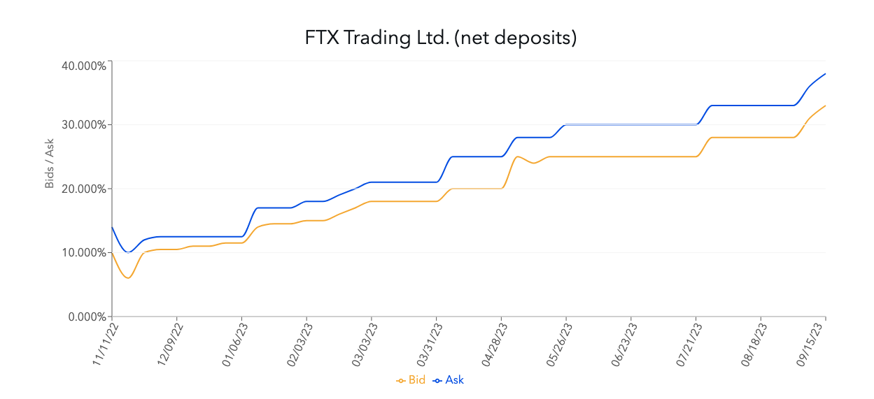 The historical indicative prices of “bid” and “ask” for larger FTX claims have also been on the rise this year, according to the Claims Market’s charts.