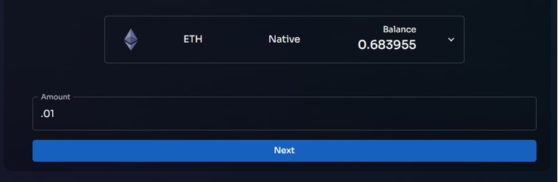Next, the user is required to select the token and the amount that he wishes to transfer. The platform supports ETH, BNT, GRT, SAND, SNX, FTM, DAI, and many more. Note that users should hold a sufficient ETH in their connected Metamask wallet to cover the gas fee. Otherwise, it will show a warning message.