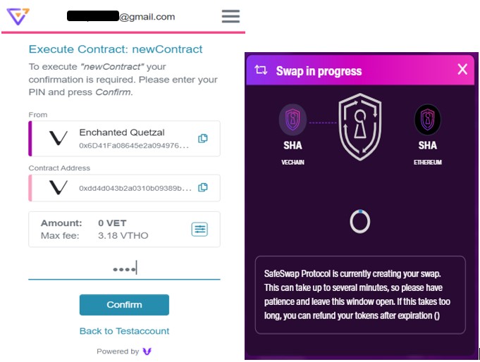 Test 1: Vechain Venly Wallet to Ethereum MetaMask Wallet