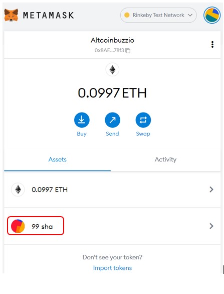 Note that the connected wallet must contain a sufficient amount of native tokens to pay for the gas fees and the test SHA token.