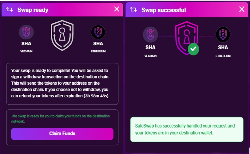 Once the swap is ready, you can withdraw your funds. To withdraw, click on the Claim Funds button.