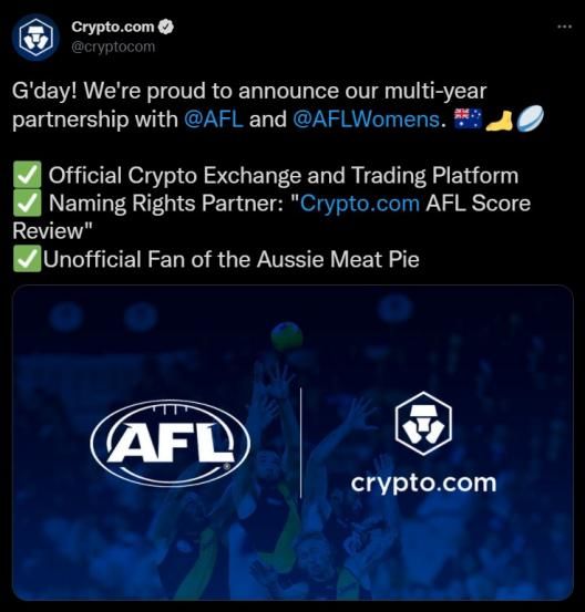 - Crypto.com has signed a 5-year partnership with AFL and AFLW.
