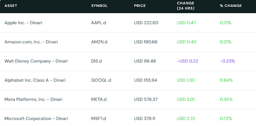 Dinari, which launched in 2021, enables the trading of dShares, which are one-to-one backed tokenized securities, such as AAPL.d (Apple) or AMZN.d (Amazon). The product publishes its holdings directly on its website for prospective users to view, in order to meet both the SEC and DeFi market’s transparency expectations.