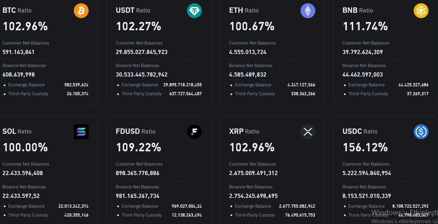 According to Binance's official website, the reserve ratio (Binance's holdings divided by user assets) for major cryptocurrencies is overcollateralized.