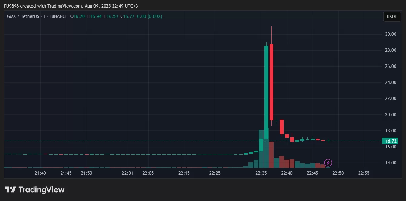 According to breaking news, a trader's TWAP transaction on the Binance spot market increased the price of GMX by 100% in a short time.