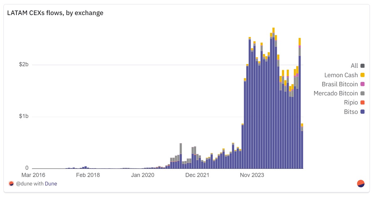 Bitso remains the most dominant LATAM exchange by flows
