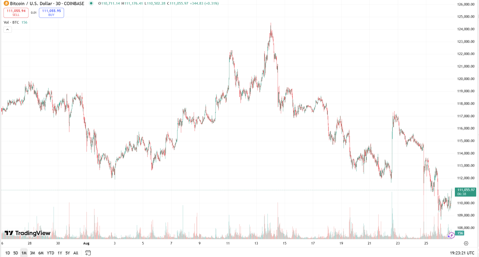 The BTC price briefly dipped below $109,000 on Tuesday, according to TradingView data.