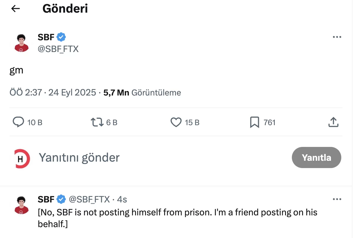 SBF posted a post from its X account that read “Good Morning.” This post was met with surprise. SBF was found guilty of fraud and embezzlement of billions of dollars in customer funds and was sentenced to 25 years in prison.