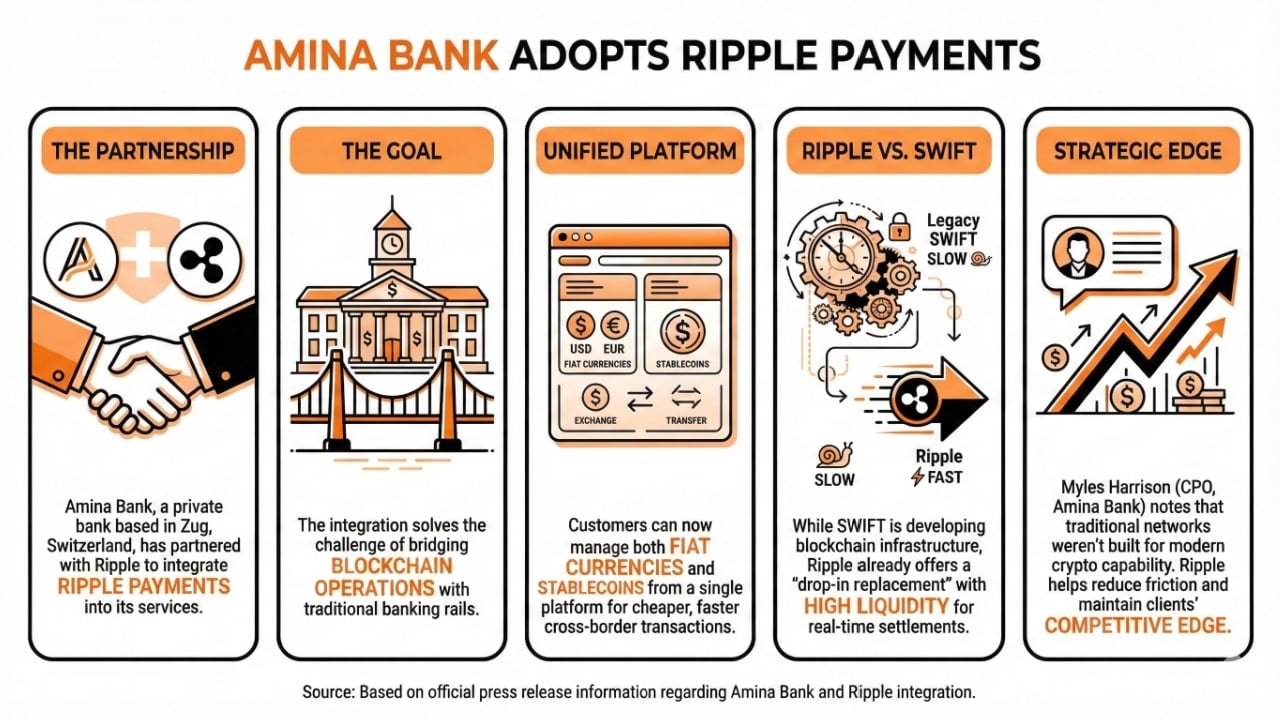 Amina Bank is the first European institution to implement Ripple Payments, strengthening its position in the digital asset space and supporting wider adoption of blockchain technology.