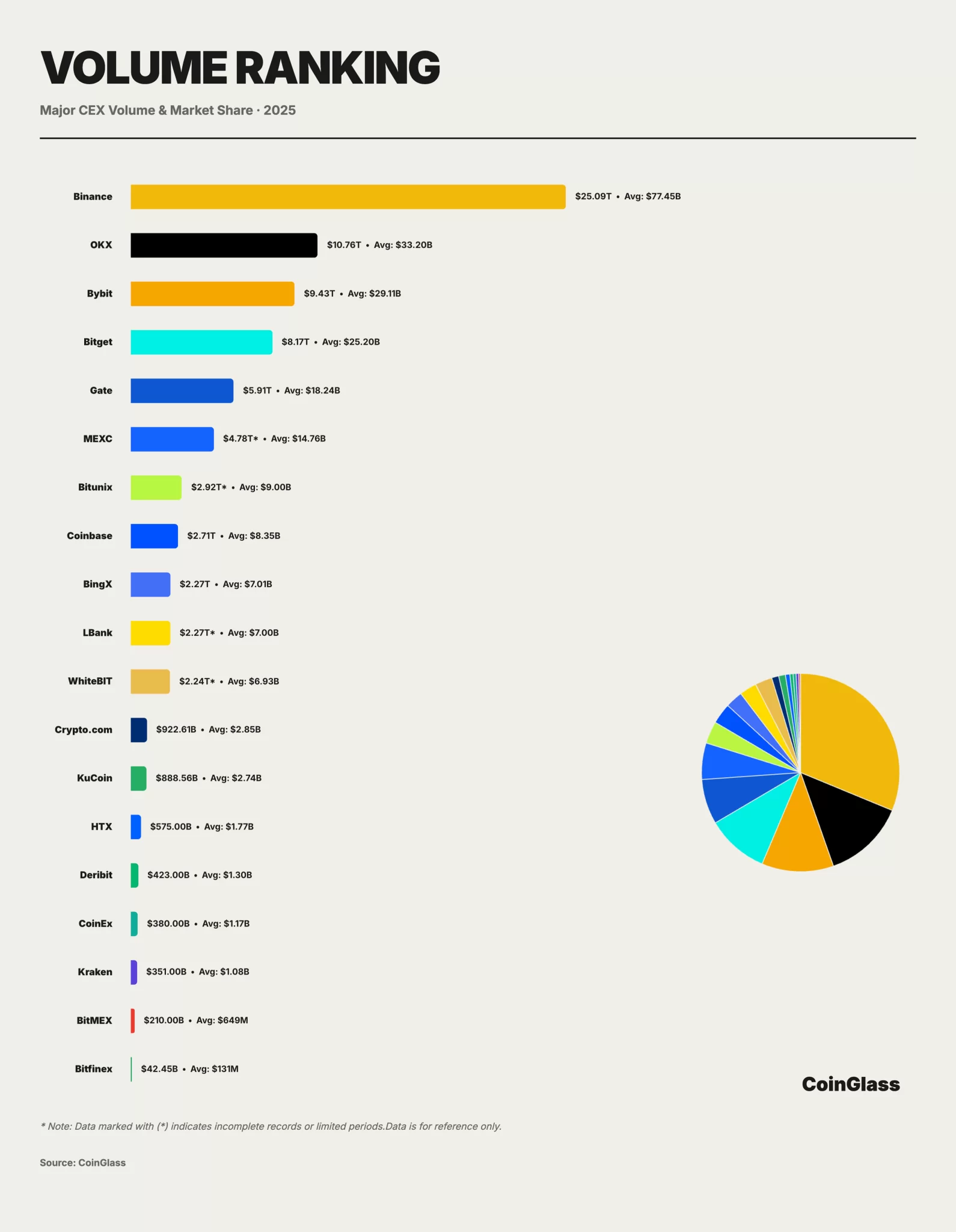 According to the CoinGlass report, Binance led the market with a total derivatives trading volume of approximately $25.09 trillion.