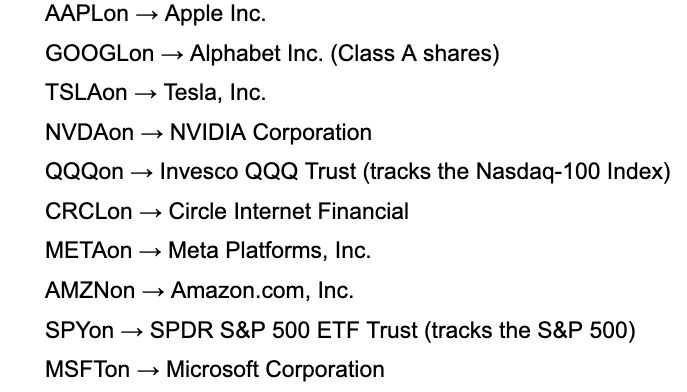 The integration features 10 tokenized assets at launch, including AAPLon, NVDAon and QQQon, corresponding to Apple, Nvidia and the Invesco QQQ Trust ETF, with additional assets planned for the future.