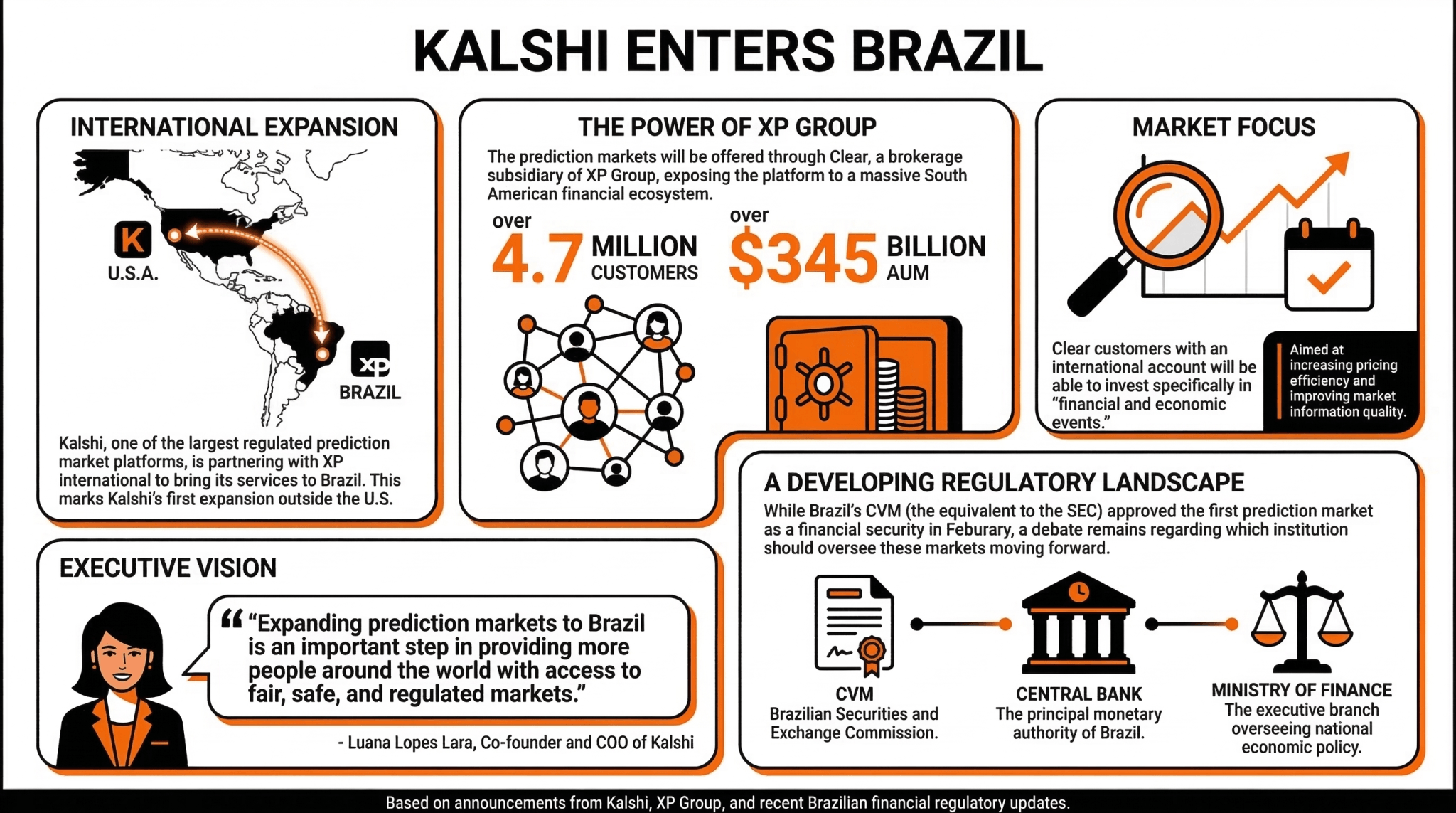 Kalshi is partnering with XP International to introduce prediction markets in Brazil, marking its first expansion outside the U.S. -