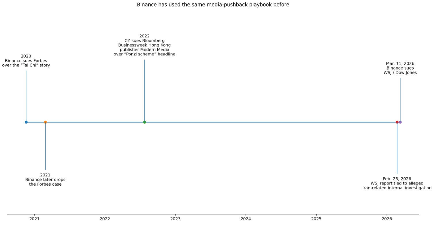 | Mar. 11, 2026 | Binance sued WSJ / Dow Jones | The same old tactic now lands inside a different, more politically favorable backdrop |
