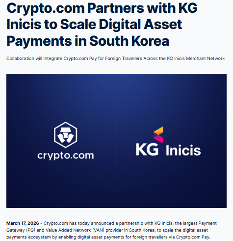 - Crypto.com teams up with KG Inicis to expand crypto payments.
