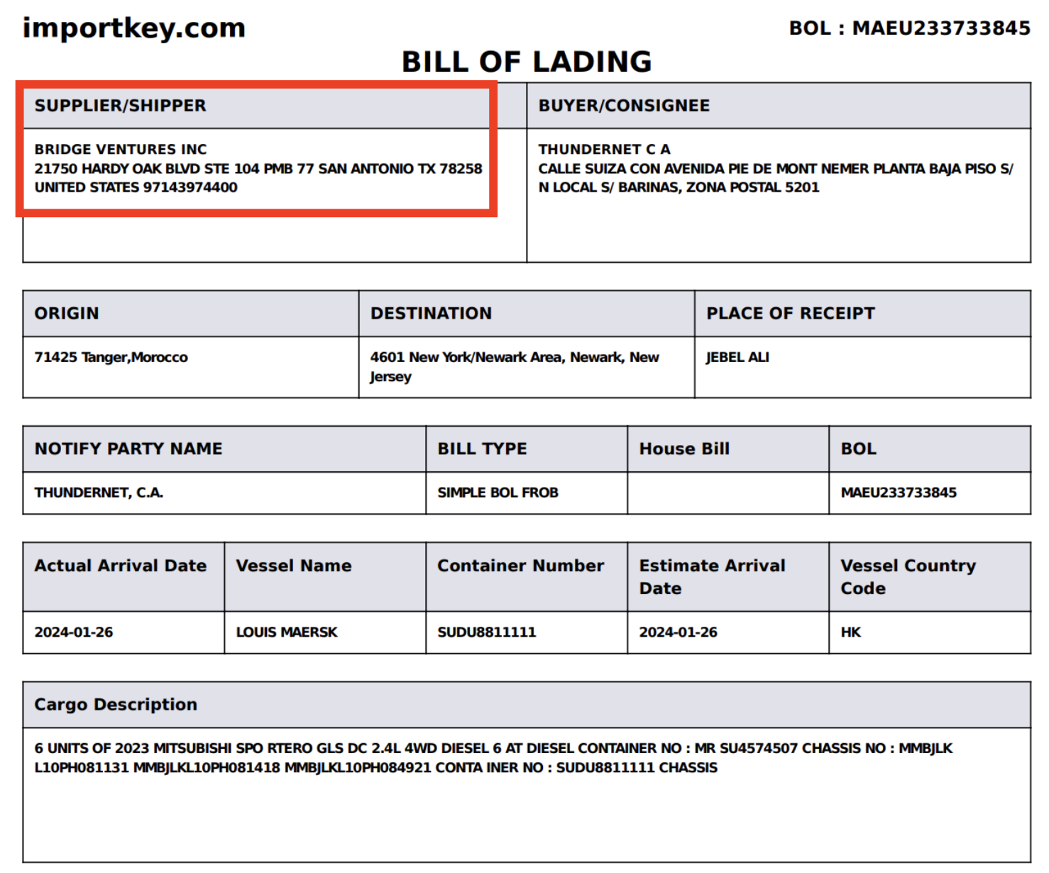 The buyer on both truck shipments from “Bridge Ventures Inc.” was Thundernet, C.A., an internet provider based in Barinas, Venezuela.
