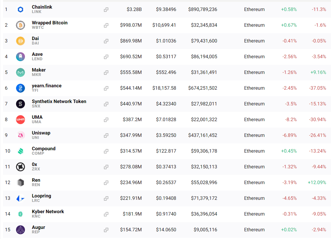 As per CryptoSlate’s analytics page, the $11 billion-worth DeFi market is carried on the shoulders of Ethereum — 15 of the top DeFi projects are all based on or run upon the protocol, each having market caps of hundreds of millions of dollars.