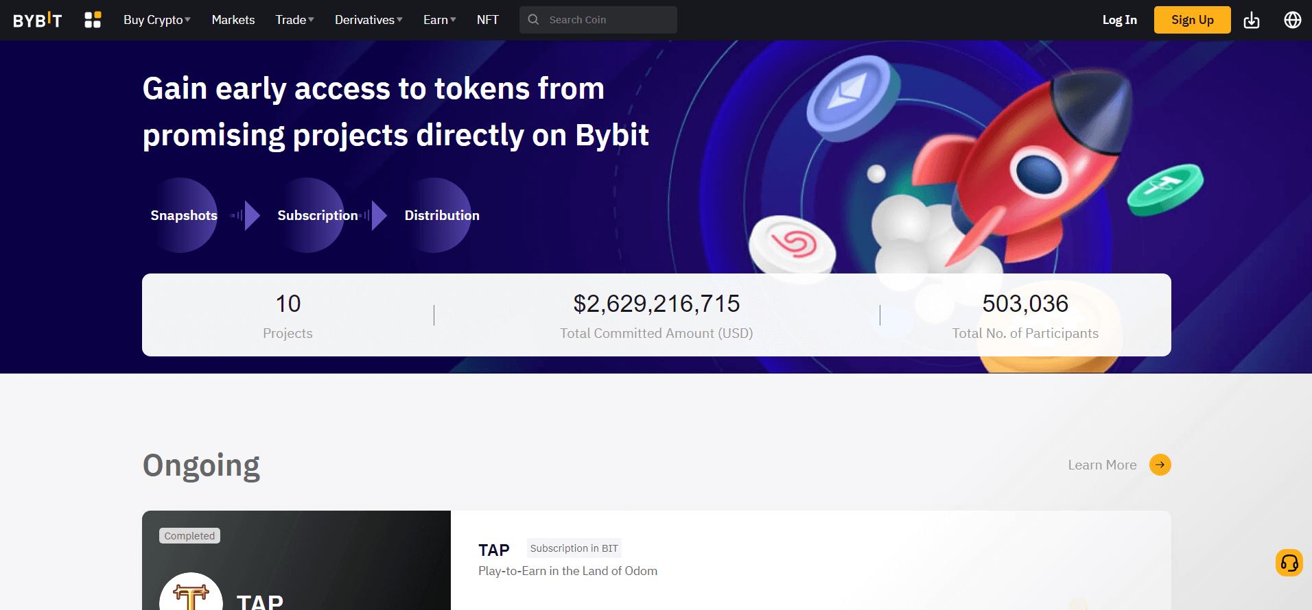 Bybit Launchpad is a crowdfunding platform that gives investors early access to new and pre-listed tokens from blockchain-based projects. Users must stake the platform’s native token BIT towards each project to participate in a crowdfunding round.