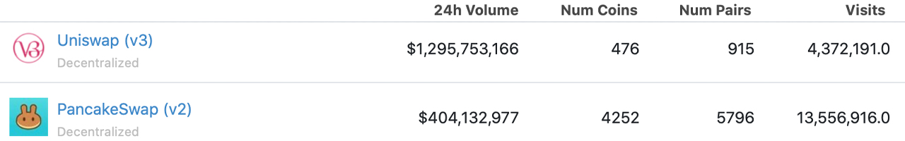 In 12 months, dex platforms recorded over $1 trillion in trade volume as they have become prominent fixtures in the crypto industry. Today, data from coingecko.com, coinmarketcap.com, dune.com, and theblockcrypto.com indicates that Uniswap version three (v3) is the largest dex by 24-hour trade volume, with $1.29 billion during the last 24 hours. Following Uniswap v3, dex platforms like Pancakeswap v2, Dydx, and Curve Finance hold the top 24-hour volume positions at the time of writing.