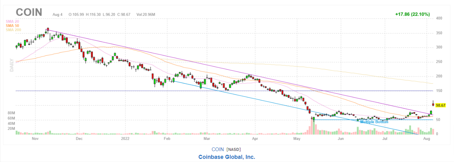 At the time of writing, COIN is up by 22.10% following the news of the partnership. After multiple bottoms have been noted on the daily chart, the change of momentum now seems superfluous to mention.