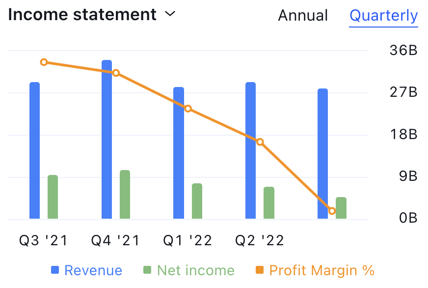 Overall, Meta saw its revenue fall 4% in the third quarter, while expenses rose by 19% year-over-year to $22.1bn. Compared to the previous year, operating income fell by 46% to $5.66bn, while overall net income was down 52% to $4.4bn for the quarter.
