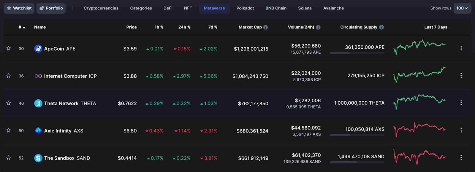 Internet Computer (ICP) is another metaverse token that is ranked in the top 40 by market cap; ICP is second on the list of metaverse projects by market worth. Many long-term performance initiatives are still actively developing. The same is true for ICP, with the majority, if not all, of this research, aimed towards recreating the internet using Web3.