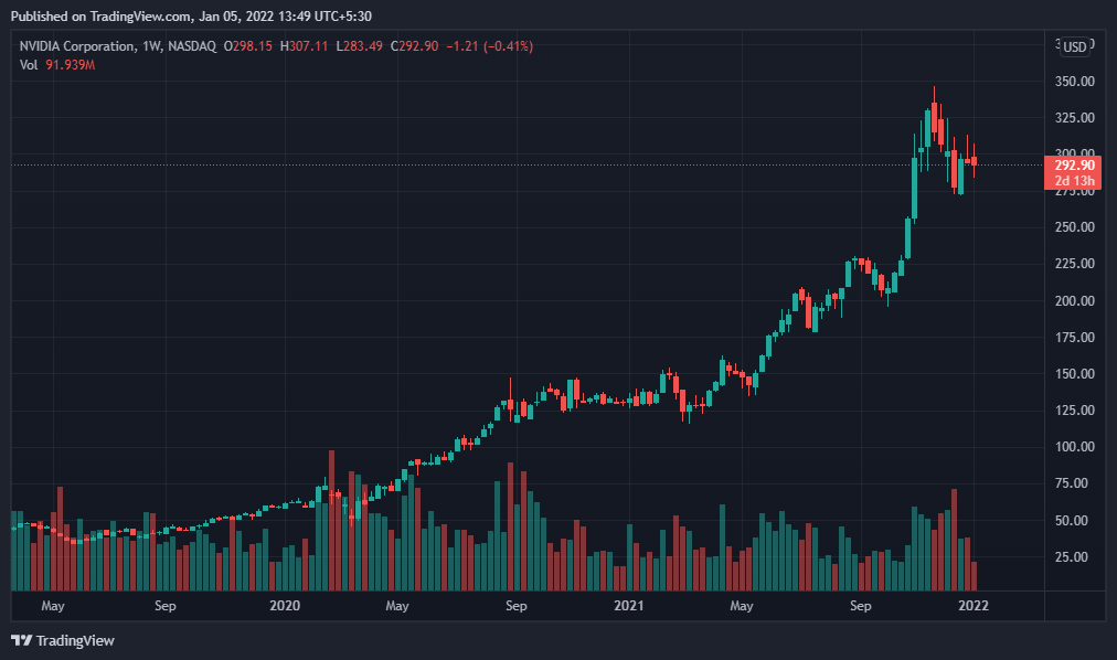 - As of this writing, stocks of NVIDIA were trading at $292.9, bearish by 2.76% in the previous 24 hours.