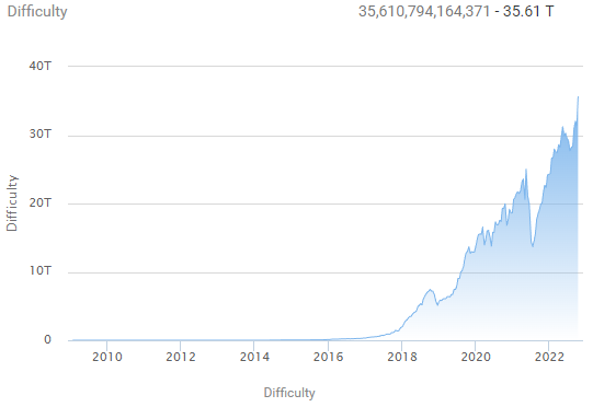 Since then, the difficulty had been on a steady climb in 2022, reaching 31 trillion in May before turmoil stemming from the collapse of TerraUSD and its LUNA governance token hit the market.