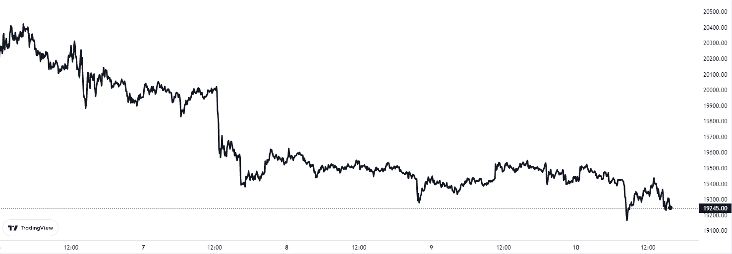 At the time of writing, Bitcoin’s price floats around $19.2k, down 1% in the last week. Over the past month, the crypto has lost 10% in value.