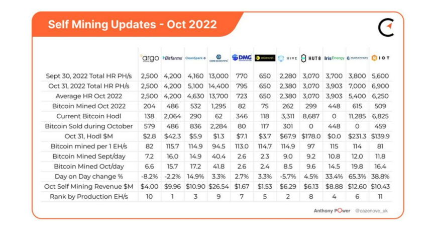 Argo also sold 579 Bitcoin in Oct. 2022, bringing its total Bitcoin holdings to 138 BTC. According to Compass Mining, this stash of Bitcoin, together with any Bitcoin mined in Nov. 2022, will still make the company unable to cover operational costs.