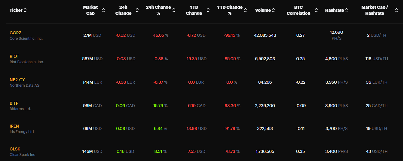 Core Scientific has seen their share price fall by 99.15% over the course of the year, while Iris Energy and Riot Blockchain saw falls of 91.79% and 85.09% respectively.