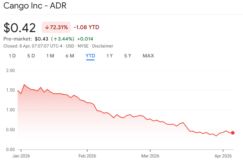 Cango’s stock price rose 3.44% in pre-market trading on Wednesday, but has fallen by around 72% year-to-date, according to Google Finance data.