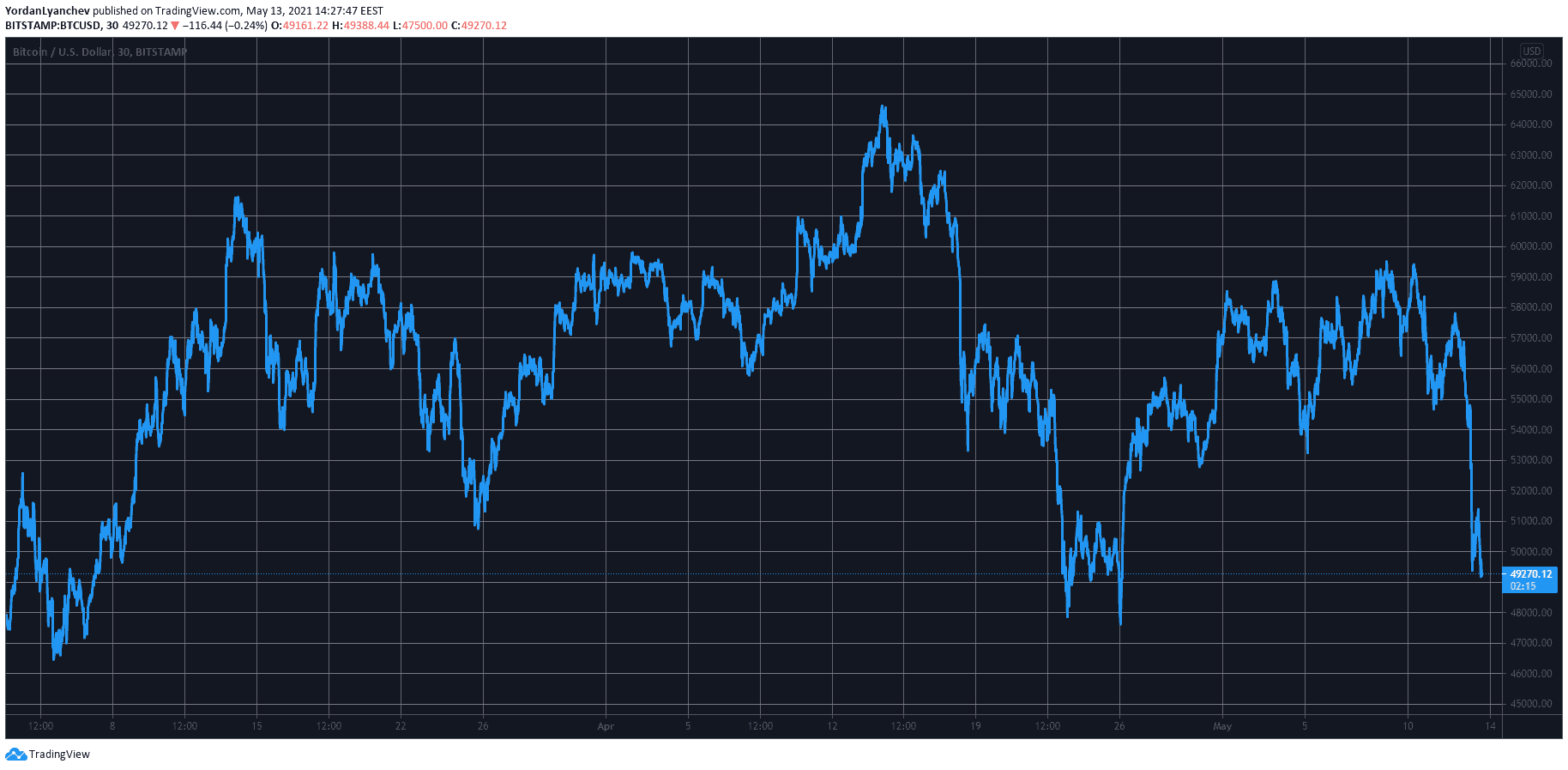 The asset tumbled immediately and lost more than $12,000 in a day. Despite recovering initially and jumping above $50,000, BTC has dipped once more and currently sits below this coveted price line.