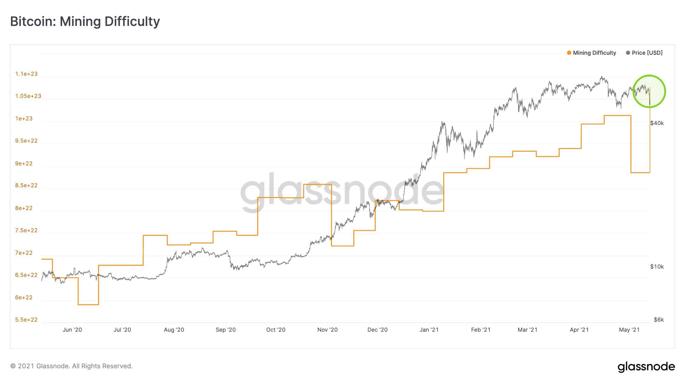 As the hash rate reached a new ATH just recently after a substantial decline in mid-April, the mining difficulty had to act accordingly. In fact, it underwent the largest increase in almost seven years (21.5%), as Glassnode informed. As a result, this metric also registered a new all-time high record.