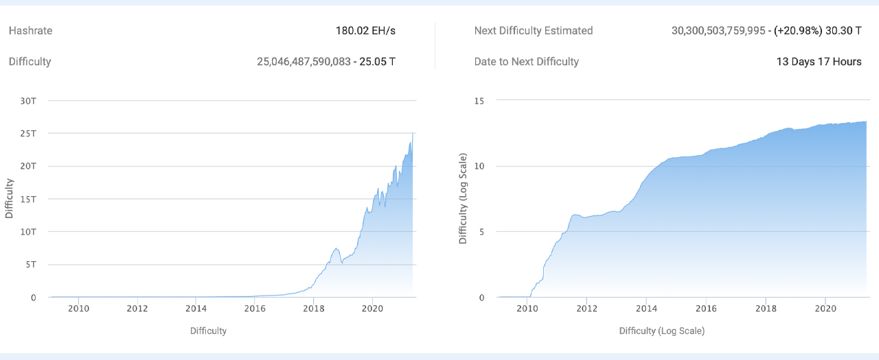 Essentially, BTC’s mining difficulty is the measurement of how difficult it is to find a hash below a given target. The more hashpower there is, then the more the difficulty increases, and when the hashrate lowers, the difficulty drops as well. The difficulty system Satoshi Nakamoto crafted is meant to keep equilibrium within the mining system and fairly consistent 10-minute block intervals.