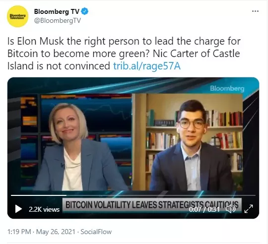 However, Carter said that the proposal made to Bitcoin miners about being more transparent in the future about their energy mix is good, whether it comes from Elon Musk or would have come from somebody else.