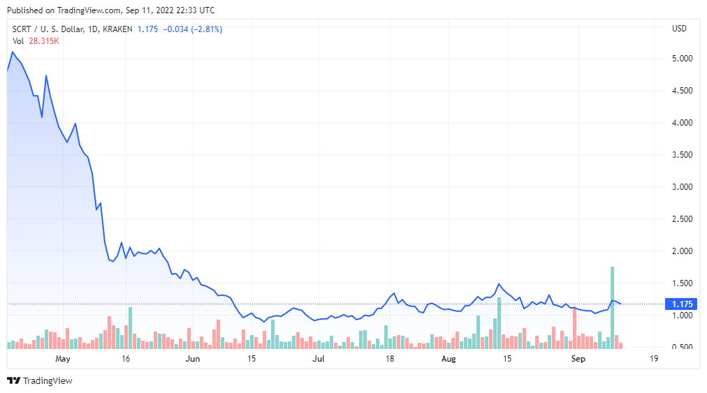 SCRT price chart for 09/11/2022 on Kraken | Source: SCRT/USD on TradingView.com
