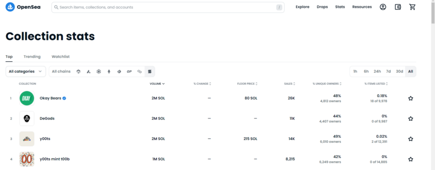 Both collections rank in the top three Solana NFTs by volume on the OpenSea marketplace. In the past day, DeGods hit nearly 2.2M SOL in total volume, while y00ts recorded 1.7M SOL. Therefore, the departure would hit Solana drastically.