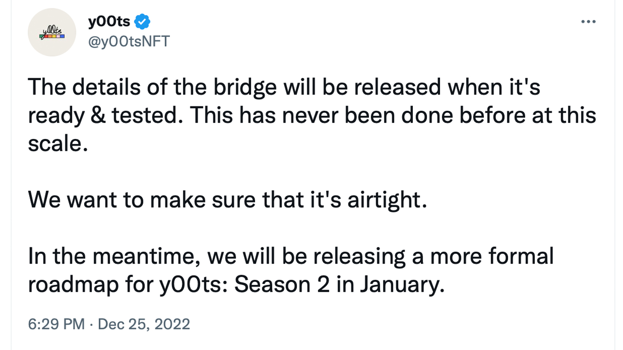 Degods will officially bridge to Ethereum in Q1 of 2023. The bridge is not the destination. It is on the path to get there.