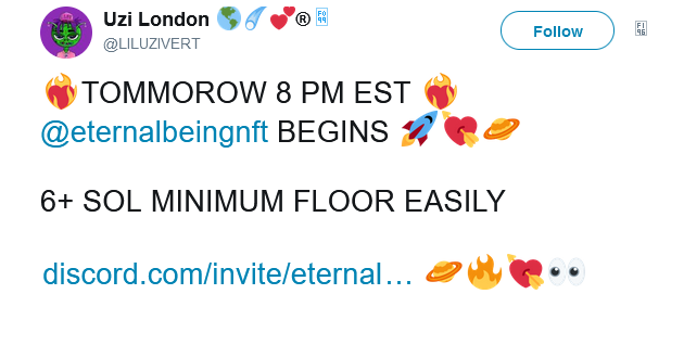 In one of Lil Uzi’s deleted tweets on Internet archive WayBack Machine, he says that NFTs would reach a minimum floor of 6 SOL ($810) “easily”, which may be something the eagle-eyed U.S. Securities and Exchange Commission could potentially take issue with, if the regulator determines the Tweet to be the promotion of an investment product.